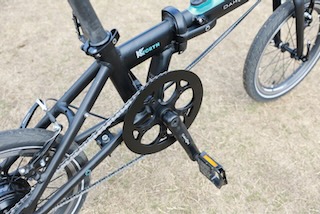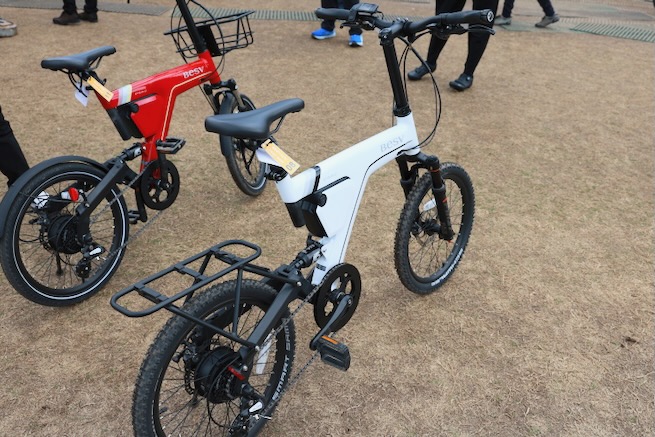 パッと見ではEバイクとわからないコンパクトな折りたたみ自転車。重量12.5kgとEバイクとしてはかなり軽い。ハブモーターの構成でバッテリーはフレーム内に24V-5Ah(120Wh)が内蔵されている。容量的にPSA1の1/3以下なので航続距離は期待できない(カタログスペックで30km)。