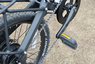 リアハブモーターの構造だけど軸の脱着はクイックレバー。ハブモーターからの出てるケーブルのコネクターを抜くだけでリアホイールの脱着ができる。工具いらないのでメンテは楽。モーターの入ってないBB周りはスッキリしてる。