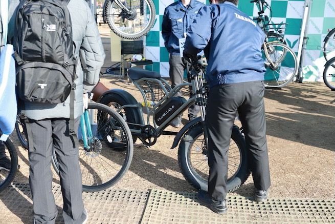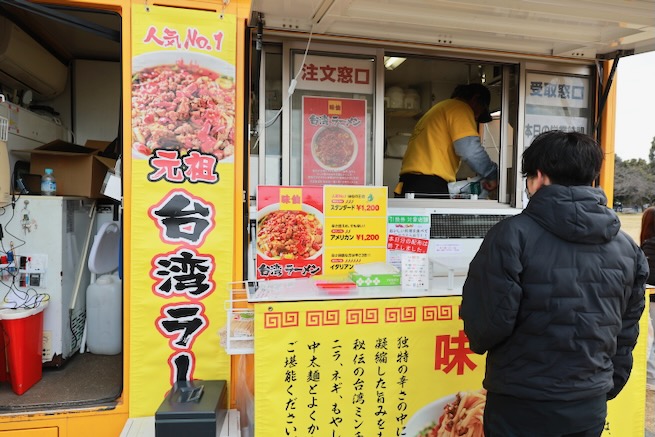 で、写真撮っているときにはスルーしてしまって、マトモに撮れてないのだが、この試乗車のPSA2はフロントフォークが最近オプション設定されたF1RSTというAIRショックに変更されていた。タイヤもわざわざブロック(シュワルベのスマートサム)に変更してオフロード感を出している。 私を含めPS1やPSA1のヘビーユーザーがあちこちの試乗会で要望を入れまくったからか、カスタムチックなことをBESV自体がやってくれるようになったのは素晴らしい。特に20インチ用のエアショックタイプのフォークなんか国内流通してないから入手が難しかった。メーカーオプションとして用意してくれたのはホントありがたい。 さて、試乗コースを乗ってみての感触。やはり新しいコントローラーは良い。踏んだ瞬間にアシストがかかり、PS1やPSA1のような「踏んだけどアシストが遅れて一瞬重い」という状態がない。常に滑らか&パワフルで楽ちんクルージングという感じのアシスト感。PSA1時代からずーっと「アシストのタイムラグどーにかならん?」と文句言ってきたがPSA2で解決。 ただし、車体性能として走らないミニベロなのはPSA1時代と同じ。アシスト領域内では超快適になったが故に、調子に乗って速度を上げてアシスト領域外に入るとモッサリ感が目立つ。速く走れるミニベロじゃないことは理解しておく必要がある。 この新型コントローラーはSMALOが最初で、2024年にPX2を試乗した時に「なんじゃこりゃー!」とビックリした。同じ車体と同じハブモーターでも、制御が変わると別物のような体感になる。ハブモーターだとどれも同じようなモノだろ、と考えるのは大間違い。Eバイクは乗ってみないとわからない。 装着されていたF1 RSTのエアショックは普通に良い。うちのPS1はサンツアーのエアショックに交換してるので体がそれに慣れているのだが、このPSA2に乗っても違和感なかった。つまり同じ効果が出ている。標準ではPSA1、2は柔らかいスプリングフォークでオモチャっぽい動きをする。PS1は硬いスプリングフォークで乗り心地が悪い。不満ならF1 RSTに交換すると解決。 試乗後にブースで話し込む。スポーツEバイクの日本市場はほんとにヤバイ。シマノはやる気なしでボッシュも撤退(保守を引き継いだとこも1年半ぐらいで辞めるらしい)。そもそもEUでも市場としては縮小方向。ドライブユニットとしてはシマノが減ってボッシュ搭載が圧倒的。BESV EUもボッシュに切り替えてる。 もはやセンターモーターのドライブユニットの日本版は未来なし。そもそもモーターをどうこう言う前にスポーツEバイク市場自体が消えてしまう崖っぷち、という印象。EU版の車体をそのまま日本に入れて公道を走れるように法改正を目指すしか道が残ってないと感じる。 BESVもそういう方向を目指して動いているようだが、日本メーカーの反対が強くて(自分とこのシェアを食われるので)自転車業界として足並みがそろわないらしい。沈みかかってる泥舟の中で反対してても始まらんだろうに。もたもたしてると全員沈んでしまうぞ。 個人的には日本規制の減衰式制御は好きなのだが、もはや日本仕様のドライブユニットを開発するのはビジネスとして不可能。EP8なんか最初から減衰制御を内包しているのに販売しない。売るだけでビジネスとしてマイナスという状態。これではどーにもならない。 すでに破綻がわかる動きは色々ある。E-MTBは公道走行不可の前提でEU版を日本で正式に売るという動きがあちこちで始まっているし、BESVでも型式認定もパーツを変えた別グレードでは型式認定なしで展開する方針になったりしてる(コスト高すぎてビジネスとして成立しない)。そもそもスペシャとかベース車体ですら最初から型式認定していない。無駄なコストって考えてるんだろな。 とにかく仕様と販売までのコストを世界基準(EU基準)に合わせないと始まらない。それを拒否すると小さな市場の日本からモノがなくなり消滅するだけ。どーにか法改正の方向になってほしい。LUUPがあんな無茶な法改正の働きかけができるんだから自転車業界もできるだろ、BESVがんばってくれ。 あっというまにお昼。腹減ったのでキッチンカーエリアに行く。青空も少し見えるが昼になってもメチャメチャ寒い。 温まるべく台湾ラーメンにする。
