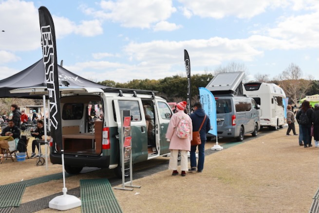 台湾ラーメンは辛くて目が覚めた。標準にしたけど辛さ控えめのアメリカンがよかったかも。たこ焼きはうまかった。 アウトドアフェスもやってるのでキャンピングカーも展示されてる。いつも思うのだが、せっかくサイクルモードの横でやってんだからコラボしてキャンピングカーで自転車運ぶ前提の装備や構成にした展示もすればいいのに。 サイクルモードエリアに復帰。