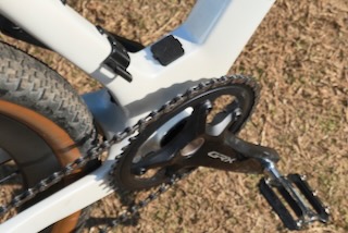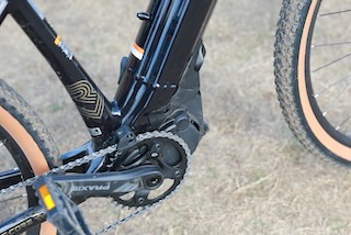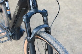 フォークはサンツアーの100mmストロークでタイヤは細めのブロック、とMTBとして見ると控えめ。グラベルとMTBの中間ぐらいを狙っているのか?ドライブユニットはRCと同じもの(セッティングは違うのかも)。