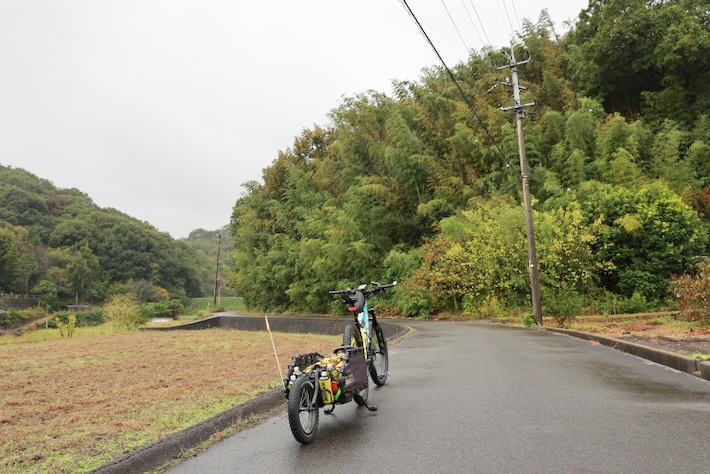 秋瀬戸芸をさっぱり見てないので宇多津へ向かう。それにしても週末の天気の巡りが悪い。秋晴れの週末がさっぱりとない。どんよりを通り越して霧雨降ってるし、、、雨雲レーダーに何も無いのひたすら霧雨。霧雨なら走れそうに思えるが時間経過と共にジワジワとヤラれてくるので、諦めてレインウェアを着る。