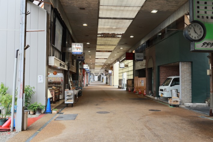 旧道っぽいルートを通ってたらアーケード街に遭遇。結構長いのに人がまったくいない。9割以上がシャッター閉まってる。うーん、、、寂しい商店街は見たことあるがここまで凄いのは初めて。もはやゴースト商店街。