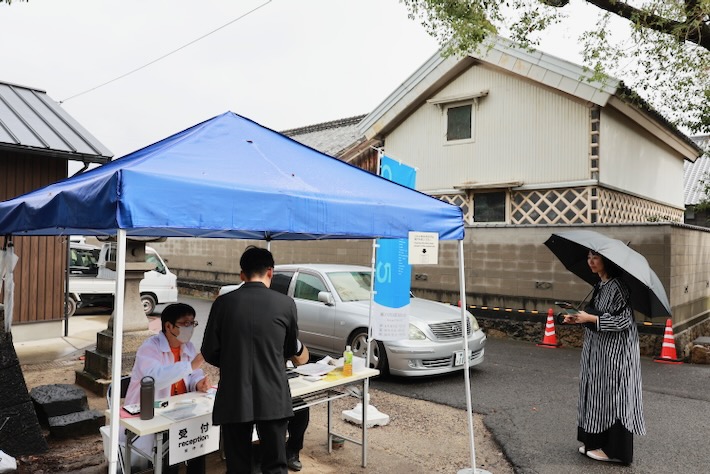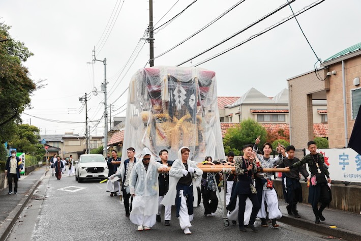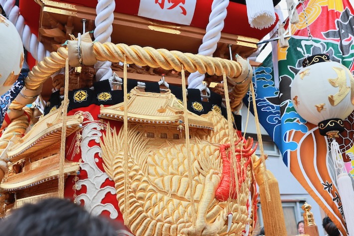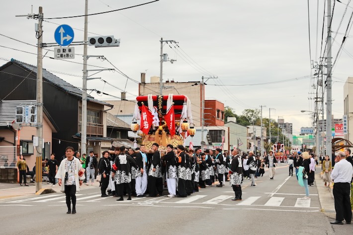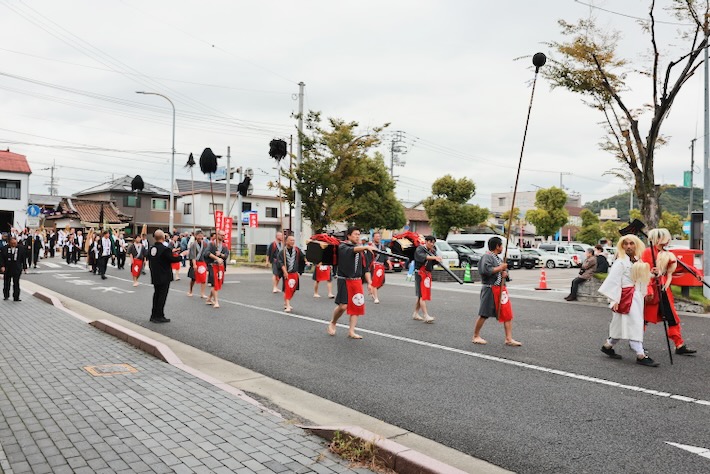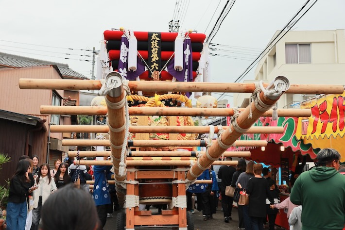 宇多津の古街エリアに近づくと何やら太鼓の音が聞こえて道路が通行制限。太鼓台が練り歩いていた。秋祭りのようだ。