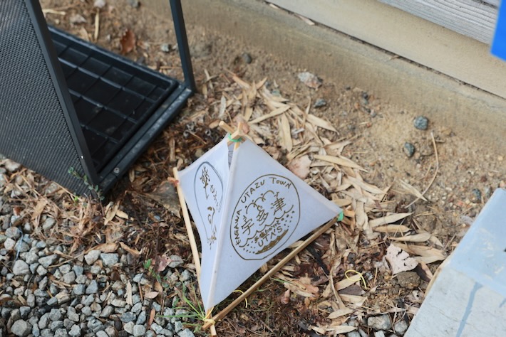 作品ポイントの周辺には三角の行灯が点々と置いてある。夜8時までやってるからライトアップされるようだ。
