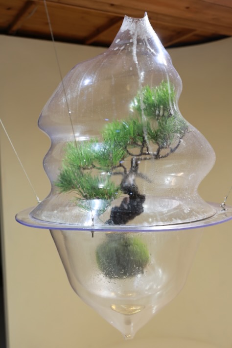 盆栽が空中に浮いてて上から雫がポタポタ落ちてる不思議な作品。