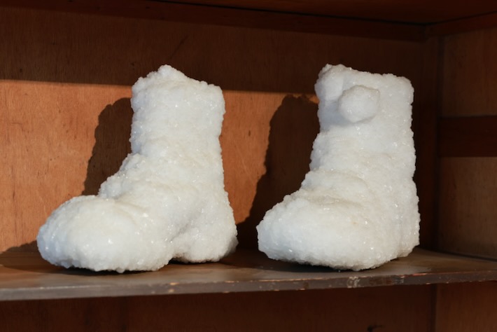 旧靴屋には死海に靴をつけて塩結晶まみれにした作品。