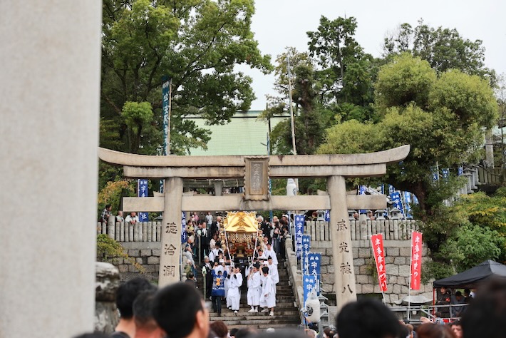 ちょうど、お下りで神輿が降りてくるとこだった。