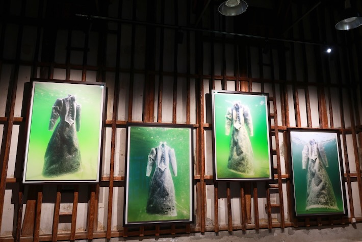 さて、塩作品の続き。ドレスを死海に沈めてだんだんと塩結晶に包まれていく経過写真。