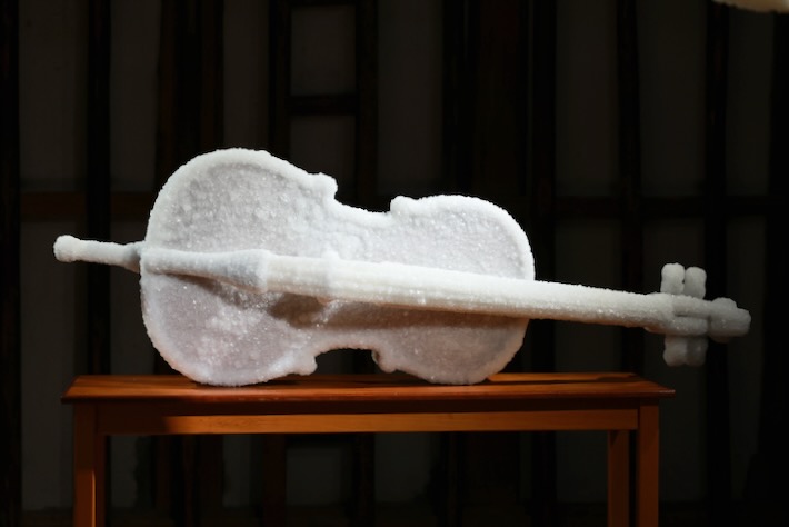ちゃんと楽器の形状を維持したまま塩結晶に包まれてるのが面白い。