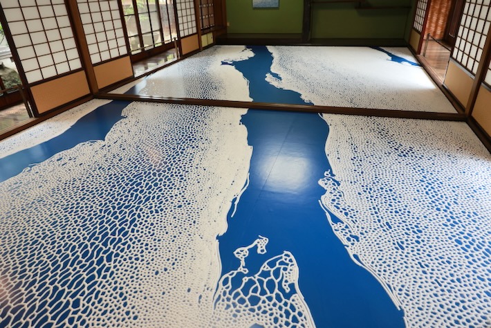 塩で模様を描いてる。海の潮の流れを表現してるんだろうか?