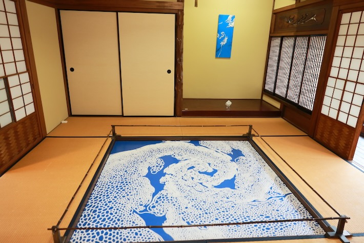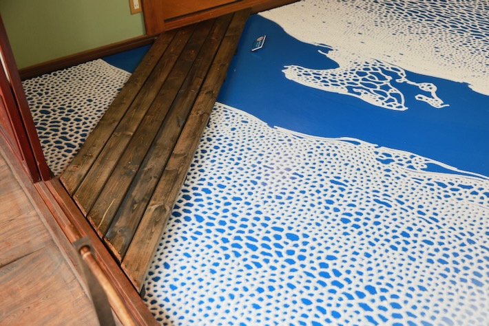 別の部屋。真ん中の2畳分が塩作品になってる。ちょっと渦を巻いてる?