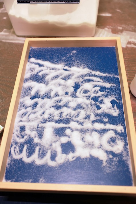 最後に自分で塩模様を描くのを試せるとこが用意されている。やってみたらメッチャ難しい。途切れまくって模様にならん。