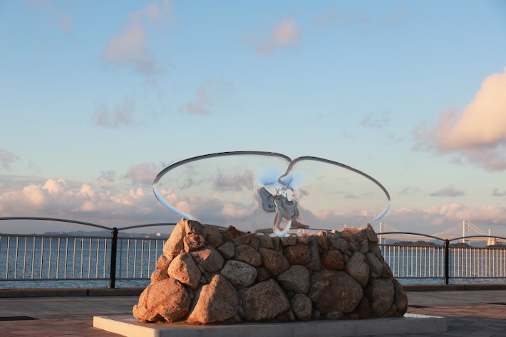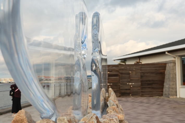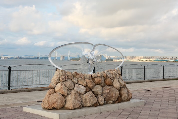 お祭りから離れて海沿いへ移動。屋外作品を鑑賞。