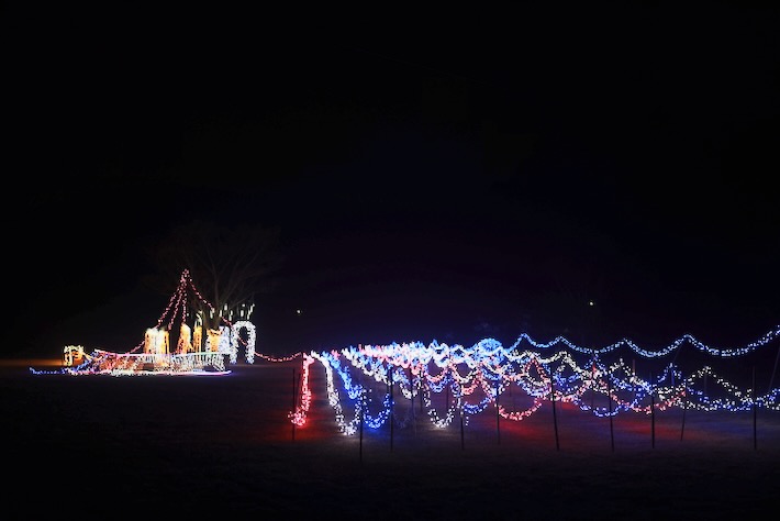 なんか配線があるなー、と思ってたが、暗くなるとイルミネーションが点灯した。こんな凝ったことになってたのか。