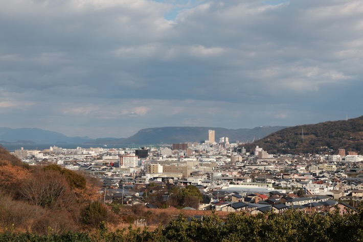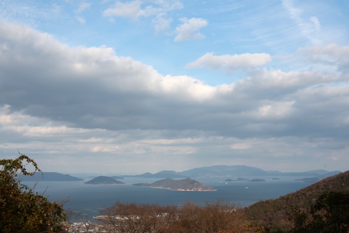 振り返ると屋島とシンボルタワーが見える。こっち方向も雲多いな。