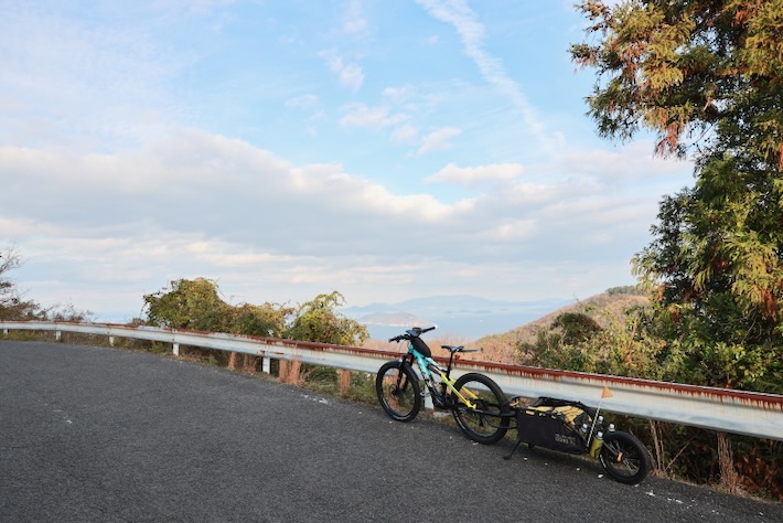 夕日が沈むポイントへ山を超えて向かう。あえていつもと違う道からアプローチ。期待を裏切らず激坂。地図で道が真っ直ぐっぽいのはどれも激坂のようだ。