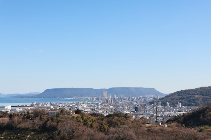 そういう道から見れる特別な景色。屋島の台形具合がよく見える。