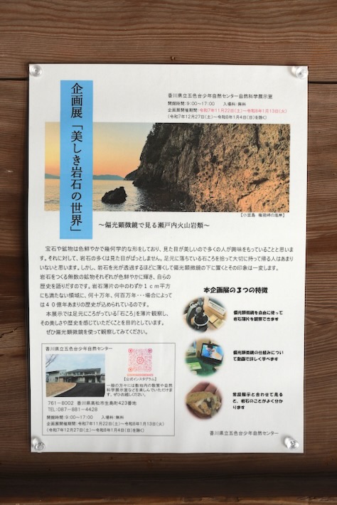 ん?外門に何か貼ってある。少年自然センターで岩石の何かを企画展示してるようだ。あとで寄ってくとしよう。