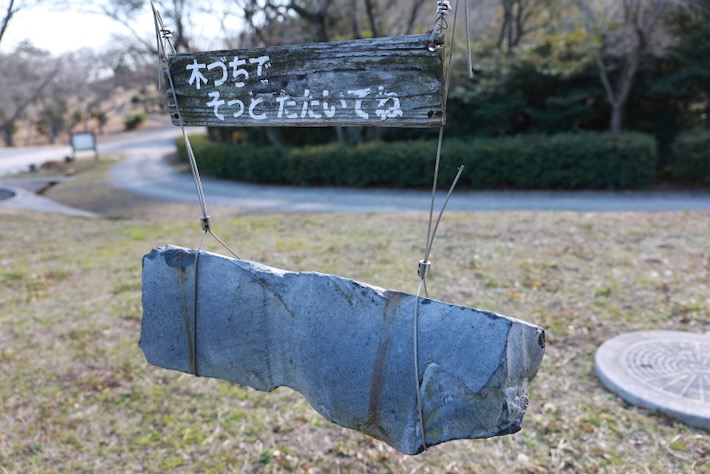 サヌカイトが吊ってある。叩くとカンカンと澄んだいい音がする。