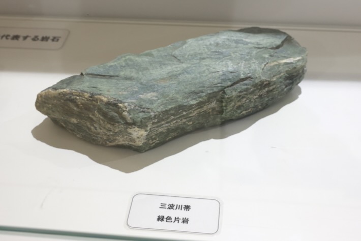 その他の常設展示も見て回る。この石、吉野川にあるやつだな。あの辺の岩は緑色っぽいのが多い。