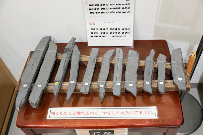 サヌカイトの木琴ならぬ石琴。綺麗な音でちゃんと音階出てる。