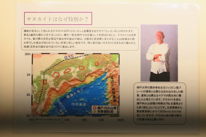 綺麗な音のサヌカイトの算出は世界中で五色台の国分台のみの限定のようだ。五色台って特別な場所なんだな。