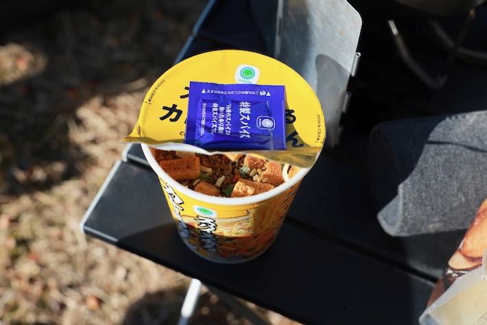 メインはカレーカップラーメン。