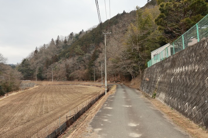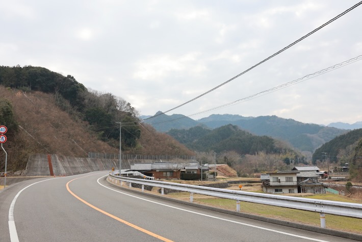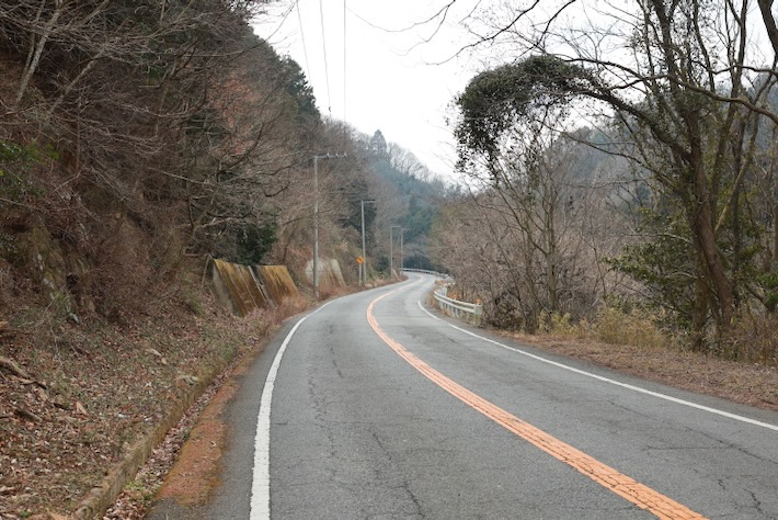 車の多い幹線から外れて山方向へ。