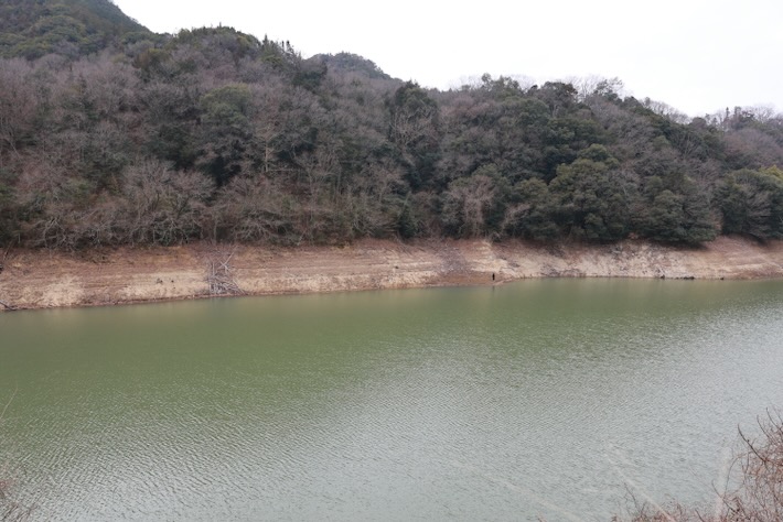 ダムの水減ってるなー。