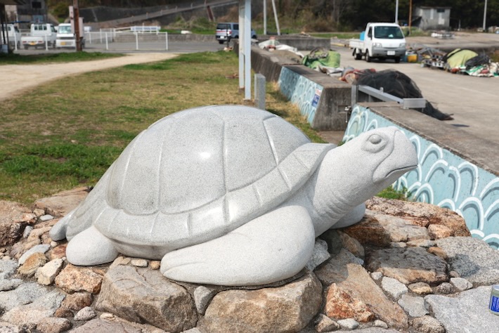 立派な亀がある。ここは浦島伝説の地。でも誰もいない。