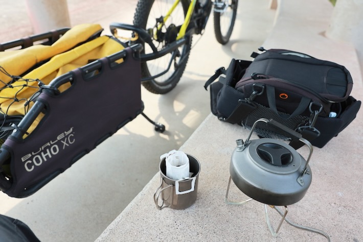 コーヒーを入れてのんびり。肝心の展望は空気白くてさっぱり。