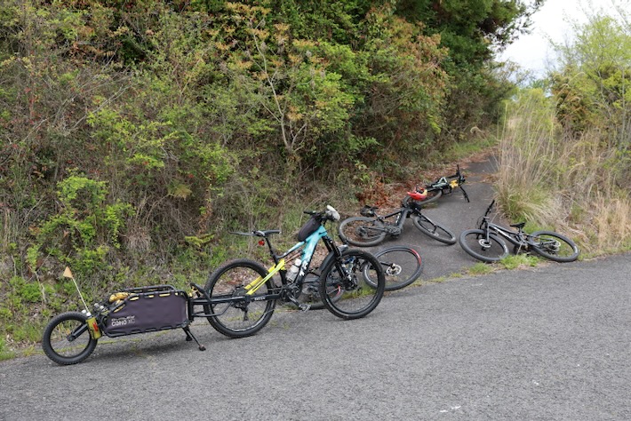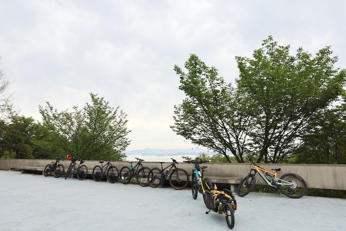 空気白くて展望はイマイチ。帰りの登りで人力MTBに合わせてアシストOFFでしばらく登ってみたが、、、足が死んだ。そもそも46Tでは無理がある。車体が重いとか以前に軽いギヤが足りなさすぎる。まーでもたまには人力地獄の感覚を再確認するのは良い刺激かもしれない。E-MTBの素晴らしさを実感できる。