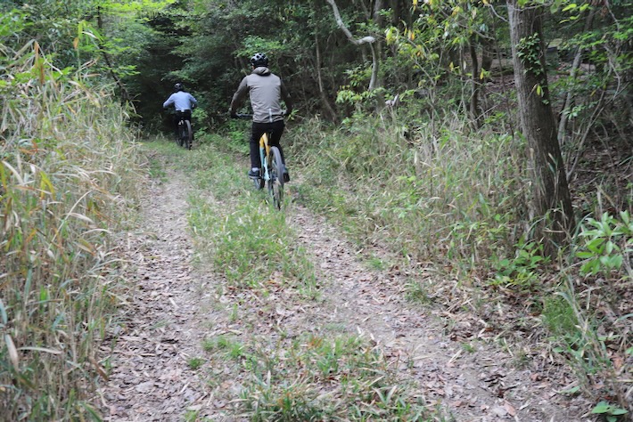 今日はお誘い受けてMTB仲間とダート遊び。当然ながら集合場所へは自走で向かう。いつものルートで走っても面白くないなー、と、Googleマップをいじってると変わった道を出してくれた。はて?こんな位置に抜けれる道あったっけ?いきなり探索から始まる。