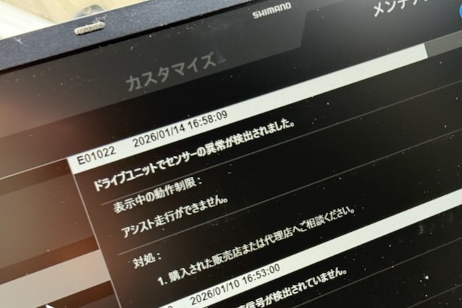2025/5にウンザリしながら交換した4つめのE8080は結局ハズレ品だった。交換当初からアシストのレスポンスが悪く出力が弱かった。それまで使った1つめ、2つめ、3つめのE8080と体感で明らかに違う。しかし、それを証明する測定器など無いので「私の体感で弱い」としか表現しようがない。 使い物にならないほど弱いなら説明しやすいが、HIGHモードが本来のHIGHとNORMALの間ぐらいの印象というビミョーな感じ。レスポンスの悪さは、それまでのE8080がペダルをそっと踏んだ瞬間から即座にカツッ!と反応していたに対して、同じ段階では反応せず、もう少しペダルトルクを入れるとアシストが動きだす。 実走でもいつもの場所を登坂するとビミョーに遅い。しかし、人力が混ざっているだけに違いを証明する方法がない。でもこれまで2万キロ以上を3台のE8080で走ってきた体感からは明らかに特性が違う。当然ながらそれ以前の3台のE8080は全て体感で同じ特性だった。4つめだけ違う。 なんか変だよなぁ、とモヤモヤしながら使い続けることになったが(一応、BESVには報告したけど体感だけを報告しても意味薄い、、、)、これまででブッチギリの最速でE010まみれになった。おまけにE010発生時にペダルほぼ踏んでないのにモーターだけで走ってしまうという異常動作のオマケ付き。 2025/09(1677km)、E01022 2025/12(2380km)、E01022 2026/01(2599km)、E01022 都度、E-TubeProjectアプリで診断レポートとログを収集してBESV経由でシマノに送った。以前はE01022が発生すると交換対応になることがほとんどだったが、シマノが判断方針を変えたのか「電源再投入で復帰する場合は正常」という回答になった。復帰しなくなったら手遅れなので納得いかないが(山の中や遠方だと絶望的な状態になる)、どーにもならない。 バカらしいので海外EP8をJP設定にして「自称合法ユニット」として使うことも考えたが、このままE010問題をウヤムヤにするのがどーにも納得いかない。シマノが正常というなら復帰しなくなるまで試して、山の中で遭難騒ぎ起こして騒ぐとこまでトコトンやるかー、と腹をくくった。E010が出るタイミングが加速度的に上がってきてるし、アシストの動作異常も出てるのでそう遠くない日に復帰しなくなるはず。 そう思ってた矢先にシマノから交換提案が出た。E010がでるたびにBESV経由でしつこくエラーログを送っていたのが効いたのか、BESVが原因の可能性などを細かくシマノに問い合わせてくれたのが効いたのか、状況から個別対応という感じになったようだ。 シマノが正常と言い張るなら復帰しなくなるまで記録をとってやろうと思っていたが、交換提案が出てきたので交換することにした。ここまで3回のE010と異常動作が出てるので「このE8080は変だろ」って言えるだけの情報は取れたのでまーいいだろ。 そんなわけで、まさかの5つめのE8080。もはやウンザリどころか呆れて乾いた笑いしか出ない。同じ車体で5つもE8080を交換した人なんか他にいないだろ。フツーに乗りたいだけなのに、なんでこんなジョーダンみたいなことになるのか、、、 これまでの経緯を整理しておく、 2019/8 --- TRS2AM購入 2021/1 購入から1年6ヶ月、5617km 時点 雪のある山を登坂中 W013とE010発生、現地では復帰せず 膨大な時間をかけて山を迂回して夜遅くに帰宅 帰宅後に端子掃除などすると一旦復帰 (実際にはバッテリーを長時間外したことによるリセット効果らしい) 診断レポートやログなどをBESV経由でシマノに送る 復帰したので様子を見る 翌月に山の反対側で停車後の加速中にE010(E01021) 復帰せず、また人力で山の裾野を遠回りして帰宅 完全に壊れて電源投入と同時にE010で復帰せず 交換対応で2つめのDU-E8080に交換 2022/4 交換から1年2ヶ月、4410km 時点 しまなみ海道の橋の上で再発進の加速中 E010(E02022)発生、電源再投入で一旦復帰 診断レポートとログをBESV経由でシマノに送る 交換対応で3つめのDU-E8080に交換 2025/4 交換から3年、11439km 時点 山の上の駐車場から出発&加速中 E010(E02022)発生、電源再投入で一旦復帰 診断レポートとログをBESV経由でシマノに送る 有償交換で4つめのDU-E8080に交換 (4つめは交換当初から出力が弱く違和感あり) 2025/9 交換から4ヶ月、1677km 時点 港で停車&写真撮影後、再発進&加速中 E010(E02022)発生、電源再投入で一旦復帰 診断レポートとログをBESV経由でシマノに送る 復帰したので正常という判断 2025/12 交換から4ヶ月、2380km 時点 遠出途中に停車&写真撮影後、再発進&加速中 E010(E02022)発生、電源再投入で一旦復帰 発生時はペダルほぼ踏んでないのにモーター出力で走る状態 診断レポートとログをBESV経由でシマノに送る 復帰したので正常という判断 2025/1 交換から4ヶ月、2599km 時点 用事で手かけて停車&電源OFF状態から電源入れて発進加速中 E010(E02022)発生、電源再投入で一旦復帰 発生時はアシストがギクシャクと変な動き 診断レポートとログをBESV経由でシマノに送る シマノから交換提案で5つめのDU-E8080に交換 自分で書いてて呆れるがこんな経緯である。この状態