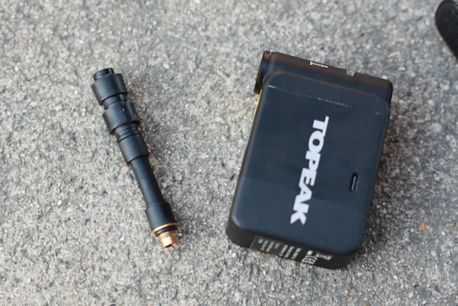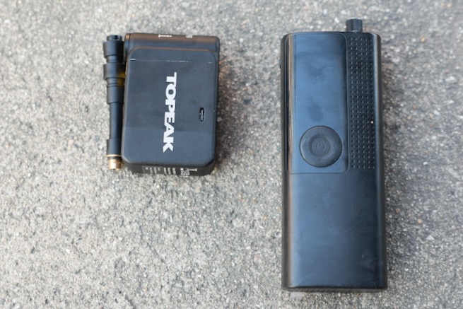 携帯用の電動ポンプは誰も気にしなかった4年以上前から使っている。個人的にはとっくに当たり前の装備になっているのだが、最近になてよーやく自転車用の携帯ポンプとして電動ポンプが話題に出てくるようになった。自転車用品のメーカーが小型の電動ポンプを出してくるようになったので、この辺でマトモな電動ポンプに乗り換えることにする。 いままで使っていた電動ポンプに大きな不満があるわけではない。でも、物理的なサイズの大きさは持ち運びに難がある。COHO XC付きの時は気にならないが、TRS2AM単体の時はバッグに入れるとパンパンになってしまうので持っていくのを躊躇する(そして置いていった時に限ってパンクする、、、)。 写真右が今まで使ってたポンプ。左が今回導入したトピークのE-BOOSTER DIGITAL。体積と重量はほぼ半分。もう一回り小さいE-BOOSTER DIGITAL MINIというのもあるのだが、バッテリー容量が少し小さく充填速度も少し遅いのでMTBのタイヤには酷だろうと思って、こっちを選んだ(結果的に正解だった)。