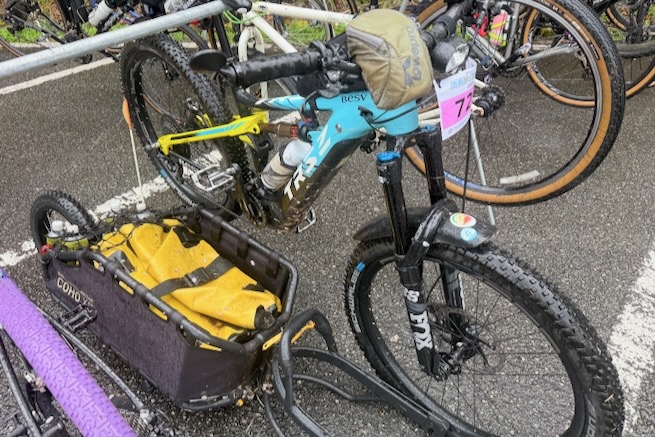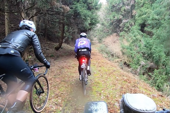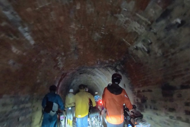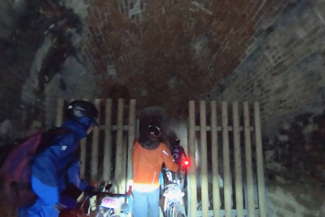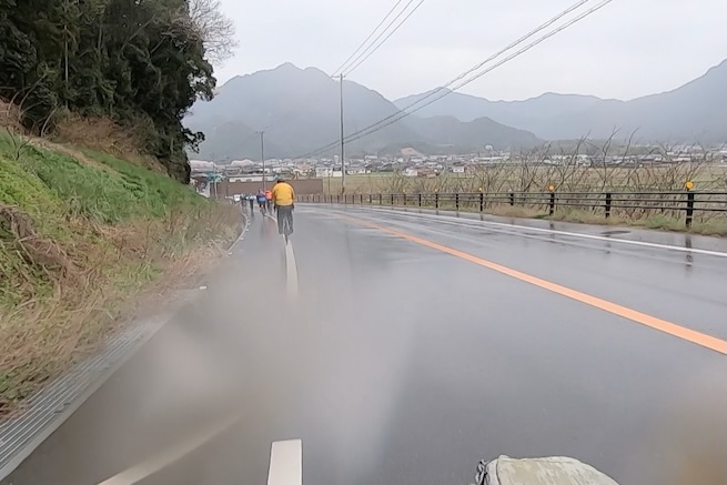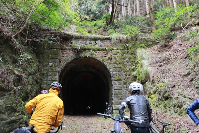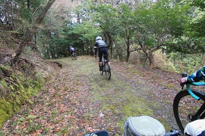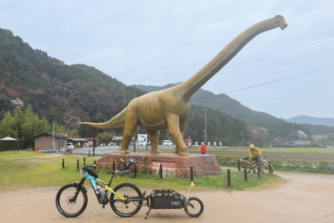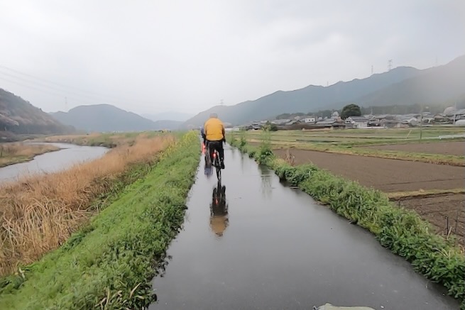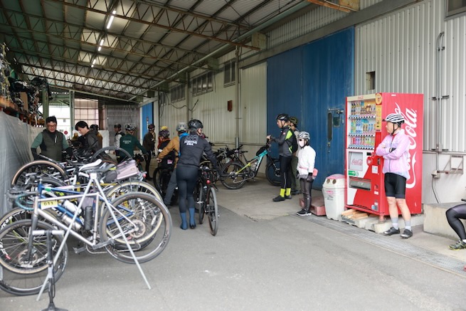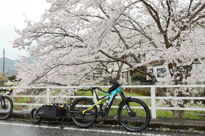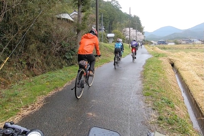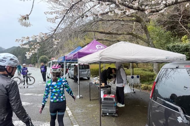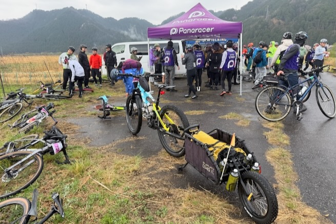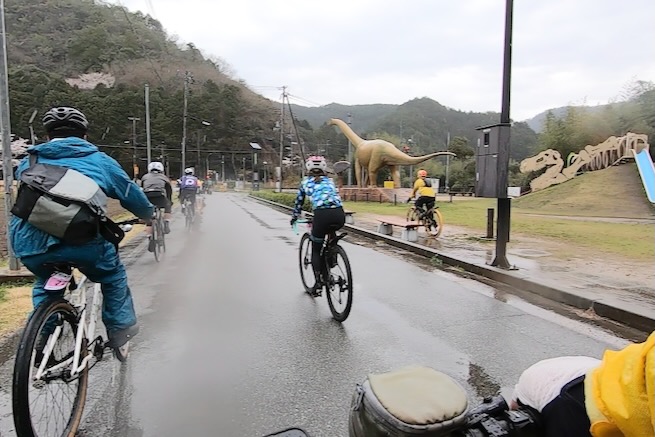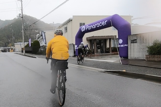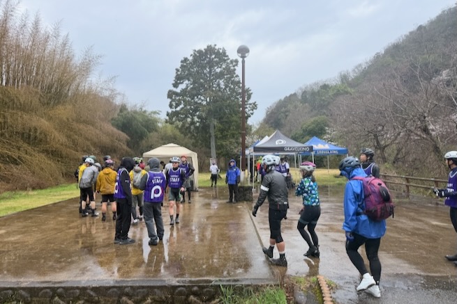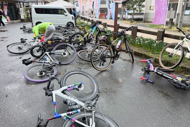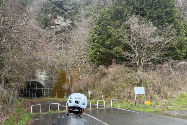 丹波グラベルデイズのグラベル桜回廊に参加。知り合いから「丹波でグラベル走るイベントがあるよ」と教えてもらった。丹波ってどこ?兵庫の上の方か、まぁまぁ遠いなぁ、とやや興味薄で見てたけどイベント会場がパナレーサー本社?なにそれ。パナレーサーってこんなとこにあるの?これは見てみたい、ってことで土曜日のグラベル桜回廊にエントリー(日曜日はガチなグラベルロード向けのコースが用意されて、2日構成になっている。会場イベントもいろいろあるようだ)。 土曜日は丸1日雨予報。午後になるほど酷くなる感じ。開催されるようなので雨前提で行く。早朝から高速飛ばして丹波へ向かうがすでに降っている。おまけに風も強め。四国から脱出するときは風が強い程度だったが、この後に鳴門大橋は強風で1日中通行止めだったようだ(知らなくて帰りに軽くハマった)。 会場のパナレーサー本社に到着。こっちはまだ雨は降ってない。 グラベル桜回廊の受付。敷地内は工場っぽい雰囲気。なかなか面白いシチュエーション。 ゼッケンを装着。今日はTRS3AM+COHO XCのいつものスタイル。 自転車置く場所には屋根がある。今日みたいな天気の時にはとてもありがたい。 がっつりと雨予報なのに意外と人多い。まー、ちゃんとしたレインウェアと着替えを用意しておけば豪雨でも走るだけならどーということはない。靴も濡れるので替えの靴もいるか。気温とウェアの加減がわかりにくいのが難点だけど、雨にさらされると意外と冷えるので暖かめが吉。 あれ?BESVブースが出てる。出店ブランドに載ってなかったけど来てるのかー、って思ってたら、何年かぶりのBESVのIさんに発見されて話し込む。丹波サイクルデイズには今年初めてブース出したようだ。 開会式。パナレーサーの社長。 ゲストの方々。 グループライドなのでグループ単位で間隔あけてスタート。ロードからスタートなのでしばし待機。しっかり雨が降ってきた。 パナレーサーゲートからスタート。 バラバラと本降りの雨。 ルート上のダートはこんな感じのフラットダート。ダート初心者でも問題なく走れる路面。 写真スポットでは止まってくれるが、グループライドなので勝手に止まって写真撮るわけにもいかずあまり自由は効かない。走行中の撮影は禁止なので、走ってる途中の絵はGoProとかに頼ることになる。 桜回廊のタイトルなだけあって、走行ルートの桜ロケーションとしては最高である。桜のすごいとこは色々あるけど自転車で走り抜けれる桜スポットは珍しい。しかもそこら中に桜が連続して出てくる。だが、今日は天気が悪すぎる、、、 エイド。こういう日はどろどろ地面に自転車寝かしたくないのでスタンドが重宝する。立ってる自転車はうちのだけ。 のんじゃえ丹波とあたり前田のクラッカー。 対岸にもずらっと満開の桜。本来なら桜を見ながらクラッカーかじるのだが、雨なのでゆっくりする気がおきない。 再出発。がんがん雨が降る。前走車に近づくとタイヤで巻き上げた水のシャワーを浴びるので少し離れて走る方がよい。 ルートの大半はマニアックな裏道。車来ないので快適。 桜はいくらでも出てくる。 そもそもダート路沿いに長い距離を桜が連続してる。で、そんな場所がいくつもある。走り抜けても惜しくない。同レベルのが次々と出てくる。走り続けながら花見も続けれるという凄い環境。 なんか恐竜っぽいのがある。ここで小休憩。 丹波竜。この辺で化石が出たようだ。 次のポイントへ移動して昼食。この吊り橋で向こう側に渡るのだが大勢で通ると揺れてシャレにならんほど怖い。 昼食会場。雨がざんざん。晴れてたら芝生のとこでのんびりと食べる想定だと思うが今日はどーにもならず。テントの下で立ち食い。 コーラーとハンバーガー。ジビエ系の肉かな? デザートもある。食べ物はなかなか良い。 羊羹といちご。 ここも桜は満開。雨でベショベショだけど。 自転車に戻って再出発の準備。サイクルラックしか自転車置く空間が無い場合はCOHO XCは外して並べればOK。連結状態が長くても困ることはない。 出発。 次のエイド着。 ここは淹れたてのコーヒーが出てきた。 お茶菓子もいろいろ配ってくれる。 ブラックサンダーと羊羹 ここからはトンネル探検。この山には3つトンネルがあってこの見えてる封鎖されてるのが昭和に作られたトンネル。立ってる下を抜けてるのが平成に作られたトンネル。 向こうのゲートから上に登ったところにあるのが明治に作られたトンネル。工事技術の進歩で長く掘れるようになるので新しいトンネルほど下の方に作られているようだ。時代ごとに彫られた3本のトンネルがあるのは日本でもここだけっぽい。 明治のトンネルを目指してダートを登る。短いけどまぁまぁの傾斜。 これが明治のトンネル。レンガ作り。 普段は封鎖されているが、今日は特別に押し歩きで通過。 ビッシリとレンガで組まれている。 トンネル内の地区の境界。 山を下る。 最後の桜スポットで写