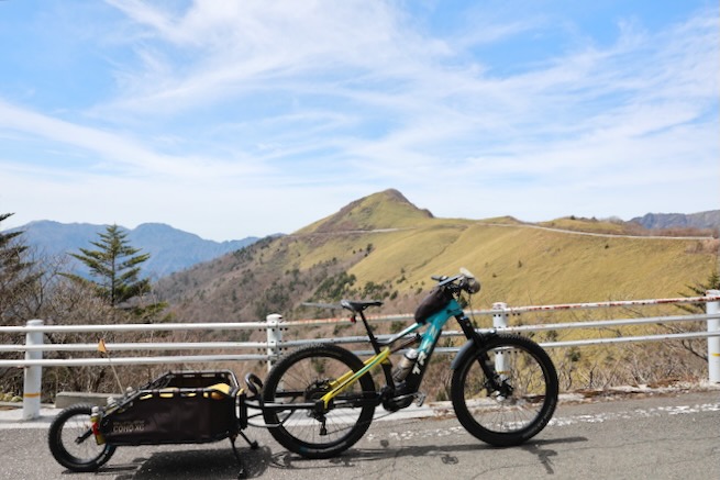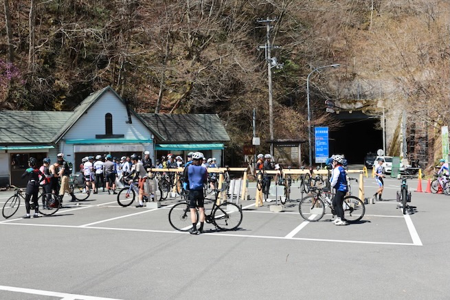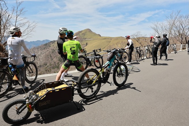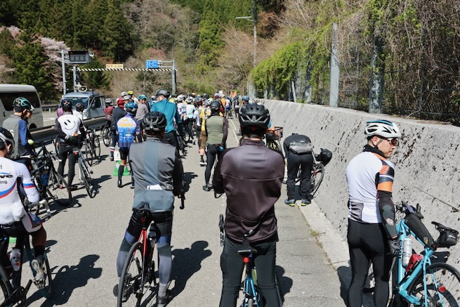 UFOラインアタック VOL.8に参加(ロングコース)。去年のUFOラインアタックは天候不順でコース短縮だった上に寒くて凍えたけど、今年は異常な気温上昇でスタート地点はもはや暑い。まるで別の季節である。天気は良いのでUFOライン見れそうかな。 今回もTRS2AM+COHO XCのいつものスタイル。今回はスペアバッテリーを運ぶ都合もあるけどウェアや工具類を適当に入れておけるので利便性高い。あとスタンドとして機能する効果も絶大。瓶ヶ森線は景色いいのであちこちで写真撮りなくなる。そんな時にサッと自転車立てたまま止めれるのでストレスなし。 今回は第1駐車場が満車だったので第2にまわされた。受付のある第1駐車場まで結構離れてるので時間ギリギリに来ると慌てるかもしれない。去年すんなり第1に止めれたのは悪天候で参加者少なかったんだろな。本来はこんな感じか。 受付してゼッケンと記念品をもらう。温泉の割引券付き。 今年は桜はもう完全に終わってる感じ。稀にかろうじて残ってるとこがあるという程度。去年はスタート地点は寒かったのに今回は日差しが暑い。上着類をいろいろ積んできたけどウインドブレーカーすら使わずに終わりそうな気がする。 横を流れる川は相変わらずエメラルドブルー。天気いいから色が綺麗に見える。 R194で600mまで上がってくるとこんな環境である。 時間がきたので整列してスタート。ロングは寒風山を登るとこから。ライドイベントとしては珍しくスタート時間が10時と遅いのでゆったり感がある。遠征でも極端な早朝から動かなくていいので楽。 木陰はヒンヤリ気味で快適。 Eバイクメリットを生かしてサクサク追い越しつつ登る。木陰が減ってくると寒風山の上が近い。ちなみに楽に登ってるわけではなく負荷はしっかりかかってる。 Eバイク乗ったことない人には伝わりにくいけど、人力ロードと同じ速度で登るなら確かに楽。でも、それだと楽すぎるからペースを上げて登る。速度上がるとリニアにアシスト比率が下がるので結果的に「似たような負荷で速く登っている」という状態になる。そうやって頑張って走ることでバッテリーも節約できる(ハイブリッド状態が人間側に寄る)。 寒風山上のエイド。ここは給水のみ。去年は極寒&暴風でスゴかったが今年はポカポカ陽気。ここまで違うと拍子抜けしてしまう。9月ごろの感じと何も変わらん。 瓶ヶ森線に入る。 まだ封鎖中だから車やバイクのいない貸切の極上環境である。本来なら極寒との戦いだけど今日はポカポカでまさに極上環境。 ルート上には何箇所がトンネルがある。路面ボコボコの上に今日みたいに晴れてると明暗差が凄くてトンネル入った瞬間に視界奪われるので要注意。ライト点灯してても目が暗闇に慣れるまでは見えないので進入は慎重に。 去年はここに残雪がどっさりあったのに今年はまったく無し。この気温じゃ雪が残ってるはずもない。 オーバーハングポイント。落ちてこないことを願う。 森林限界が見えてきた。空が近い。 デッドラインで立ち枯れている木が点々と。この限界ラインが絶景を作り出すから面白い。 UFOラインに到着。車通らないから道路占有してぐだぐだできる。 何度見てもこの絶景は素晴らしい。 自転車とUFOライン。こうやってゆっくり写真撮れるのも貸切の良さ。シーズンの週末は車やバイクがかなり行き交うのでゴチャゴチャする。 絶景の途中に第2エイドが見えてる。あそこで少しゆっくりするか。 エイドでゼッケンチェック。 ゆずゼリーを頂く。ごはんモノはここじゃなかったようだ。 いつものことながら、ここから見る景色も凄い。ほとんどの山を見下ろす絵はなんとも素晴らしい。四国の山深さがよくわかる。 今回はフルコース走れるので絶景UFOラインを走って先へ。 落石でガードレールが吹っ飛んでる、、、 巨大落石ゴロゴロ。シャレにならんな。 瓶ヶ森の登り口にあるエイド3に到着。ここでごはんモノをもらえるけどオプションルートを走るなら先に走ってからとのこと。せっかく時間間に合ったからオプション行ってくるか、追加ルートはよさこい峠ゲートまでの往復。 まずはどーんと盛大に下る。これが戻ってくるときにネックになる。 山荘しらさはひっそり。まだ開通してないんだから当然だな。 そしてゲートへ向かって登って下って、と。 ゲート着。何があるわけでもなく折り返し。修行オプションルートだな。 黙々と戻る。 このルートを反対向きに走るのは初めてなので新鮮。 エイド3まで戻ってやっとごはん。あまごめしとキジコロバーガーが同時に出てきた。ハラペコだったのでボリューム満点。 エイドでのんびりしたので、そろそろ戻る。 反対方向からの景色もなかなか良い。 振り返ってUFOラインの絶景スポットに別れを告げる。またくるぜ! 帰りはほぼ下り。舗装は傷んでうねってるとこ多いけどストローク大きいフルサスには程よいギャップ。気持ちよく飛ばして下る。 寒風山上のエイド1に到着。 ここではキジラーメ
